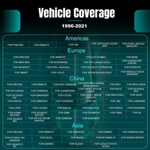 OBDSTAR X300 Pro 4 Programlayıcı Desteklenen Araba Modelleri Listesi: